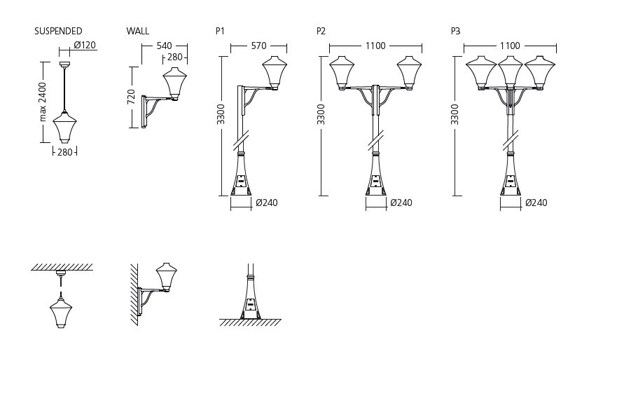 Neuste Technik im klassischen und gewohnten Design. Die Olwen Familie ist angelehnt an die altbekannten und langbewährten „Pilz“ Leuchten. Die Olwen I erhalten Sie als Pendelleuchte, Wandleuchte oder Mastleuchte inkl. Masten in verschiedenen Längen. Mit dieser Leuchte können Sie die konventionelle Technik durch LED ersetzen, ohne die Optik und das Erscheinungsbild der Umgebung zu verändern.