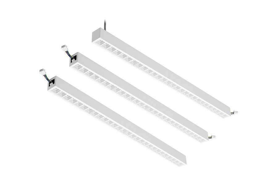 Unsere neue Leuchtenfamilie Miline setzt in ihrer Optik, Ästhetik und ihrer Lichtqualität großes Augenmerk auf eine Ausleuchtung mit hohem Sehkomfort. Mit ihren hochwertigen PMMA Linsen, die von einem optisch ansprechenden Raster eingefasst sind, sorgen sie für eine Entblendung und macht sie mit einem UGR<19 zu einer optimalen Leuchte an Bildschirmarbeitsplätzen. Die Miline ist als Einzelleuchte oder Lichtband erhältlich, 1-reihig oder 2-reihig, als Einbau, Aufbau oder sogar mit Adapter, um sie in Stromschienensystemen zu betreiben und somit auch Verkaufsflächen, Gänge oder größere Flächen auszuleuchten.