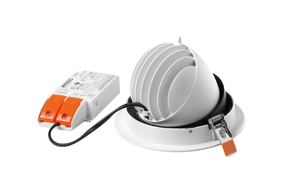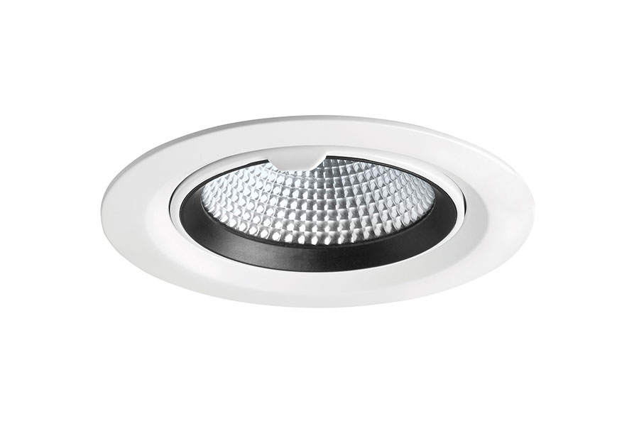 Ein einstellbares und schwenkbares Downlight! Im Vergleich zu unserer Prettus ein deutlich einfacher gestricktes Downlight. Aber durch die Gehäusekonstruktion problemlos auf Gegenstände oder Bereiche ausrichtbar. Mit einem hocheffizienten Facettenreflektor und einem Abstrahlwinkel von 60° ist dieses Downlight in Durchgangs- und Flächenbereichen sehr gut einsetzbar und auch in Verkaufsräumen zum Ausleuchten von Aktionsflächen.